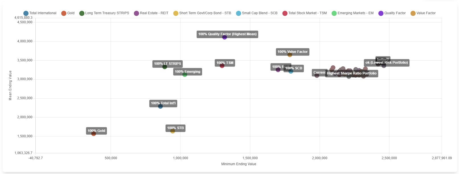 Backtested Frontier is a portfolio-optimization and backtesting platform that uses genetic algorithms and historical market data to help investors identify the most efficient frontier of optimal investment portfolios, maximizing returns while minimizing risk based on the asset classes, timeframes, and contribution schedules you specify.
